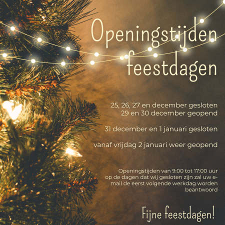 Rondom de feestdagen hanteren wij aangepaste openingstijden.